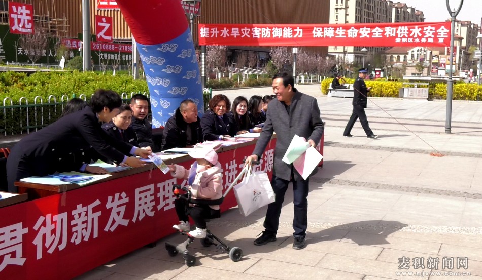 麥積區(qū)水務(wù)局辦公室主任郭成平說:“在第29屆‘世界水日’和第34個‘中國水周’的宣傳日,麥積區(qū)水務(wù)局通過宣傳水法、水土保持法,山洪災(zāi)害防治和一些其他節(jié)水性的小常識,提高市民群眾節(jié)水的意識,讓廣大市民珍惜水,愛護(hù)水,同時,加深他們對于依法行政,依法治水的理解!