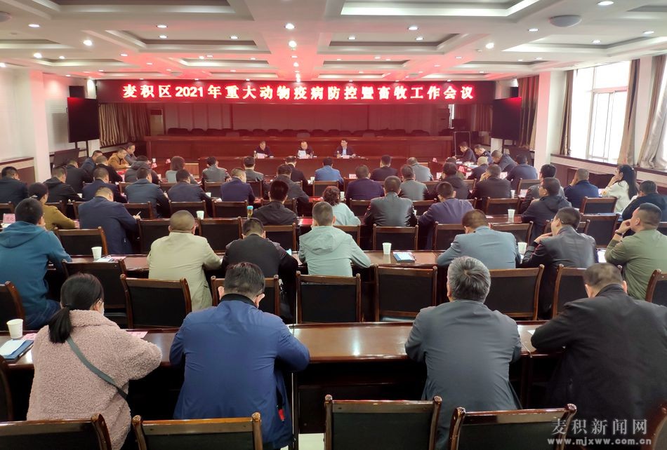 麥積區(qū)融媒體中心訊(見習記者吳雪镕 實習生 葉文麗 張敏)3月25日,麥積區(qū)召開2021年全區(qū)重大動物疫病防控暨畜牧工作會議。區(qū)委副書記霍定明主持會議并講話,副區(qū)長、區(qū)防制重大動物疫病指揮部指揮長張樹增,區(qū)政協(xié)副主席楊樹棠參加會議。
