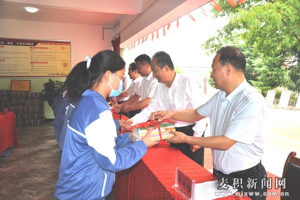 麥積區(qū)融媒體中心訊 8月4日,民革甘肅省委會(huì)、甘肅國林公益基金會(huì)圖書捐贈(zèng)儀式在麥積區(qū)琥珀初級(jí)中學(xué)舉行。省政協(xié)副主席、民革甘肅省主委霍衛(wèi)平,甘肅國林公益基金會(huì)秘書長張乾棟,市政協(xié)副主席馬勤學(xué),市政協(xié)副主席、區(qū)委書記成少平,市教育局局長沈建玲、區(qū)政協(xié)主席高志強(qiáng)出席捐贈(zèng)儀式。捐贈(zèng)儀式由市紀(jì)委監(jiān)委派駐市教育局紀(jì)檢監(jiān)察組組長王再盛主持。