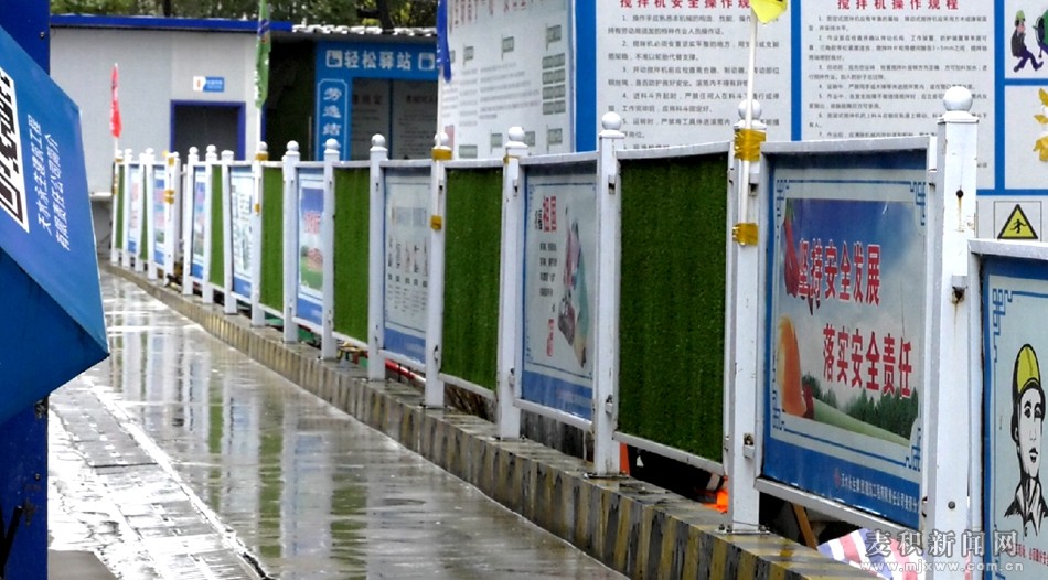 記者在晟世瓏庭第二期等多個(gè)施工現(xiàn)場(chǎng)看到,工地設(shè)置有整齊劃一的圍擋,圍擋上設(shè)有專門的創(chuàng)建全國文明城市的宣傳標(biāo)語以及公益廣告,在彰顯文明施工的同時(shí),也為我們展示了一道“綠色”風(fēng)景線。甘肅第六建設(shè)集團(tuán)股份有限公司晟世瓏庭第二期現(xiàn)場(chǎng)負(fù)責(zé)人告訴記者,晟世瓏庭第二期工程設(shè)置圍擋350米左右,其中創(chuàng)建文明城市標(biāo)語4米一處,覆蓋圍墻的50%,保障創(chuàng)建文明城市宣傳到位!拔覀兪┕て髽I(yè)根據(jù)政府部門要求以及我們施工單位的要求,對(duì)現(xiàn)場(chǎng)進(jìn)行了‘6個(gè)100%’的部署。我們對(duì)外圍進(jìn)行了百分百圍擋設(shè)置,在圍墻上張貼了創(chuàng)建文明城市的相關(guān)宣傳標(biāo)語和公益廣告,并對(duì)外圍進(jìn)行定期化維護(hù)防護(hù)。同時(shí),對(duì)現(xiàn)場(chǎng)道路進(jìn)行了硬化處理,對(duì)外露的土方進(jìn)行了裸露覆蓋!备拭C第六建設(shè)集團(tuán)股份有限公司晟世瓏庭第二期現(xiàn)場(chǎng)負(fù)責(zé)人張艷林說。