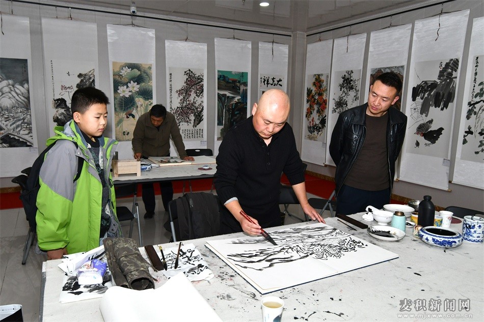 展覽期間,麥積區(qū)美術(shù)家協(xié)會、北京當(dāng)代翰墨藝術(shù)院甘肅分院的書畫藝術(shù)家們還進行了書畫藝術(shù)交流活動。