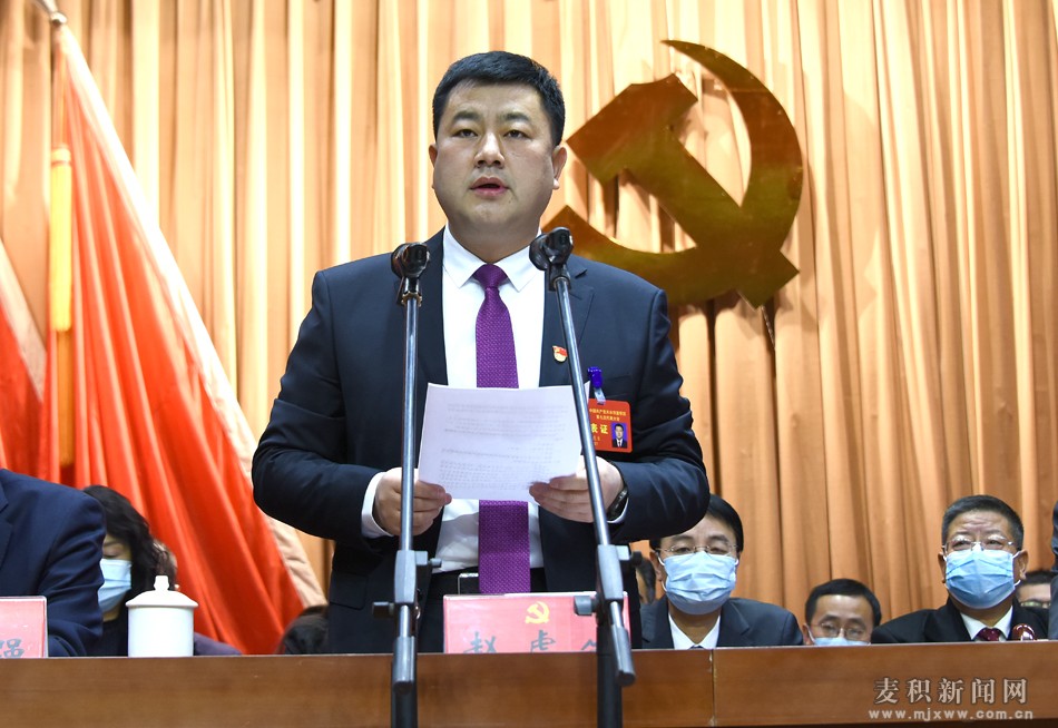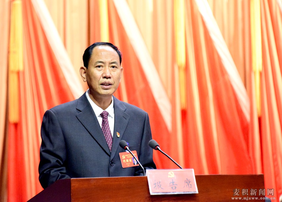在熱烈的掌聲中,康泰來代表中國共產(chǎn)黨天水市麥積區(qū)第八屆委員會向大會作題為《不忘初心 牢記使命 奮力開啟麥積全面建設(shè)社會主義現(xiàn)代化新征程》的報(bào)告。