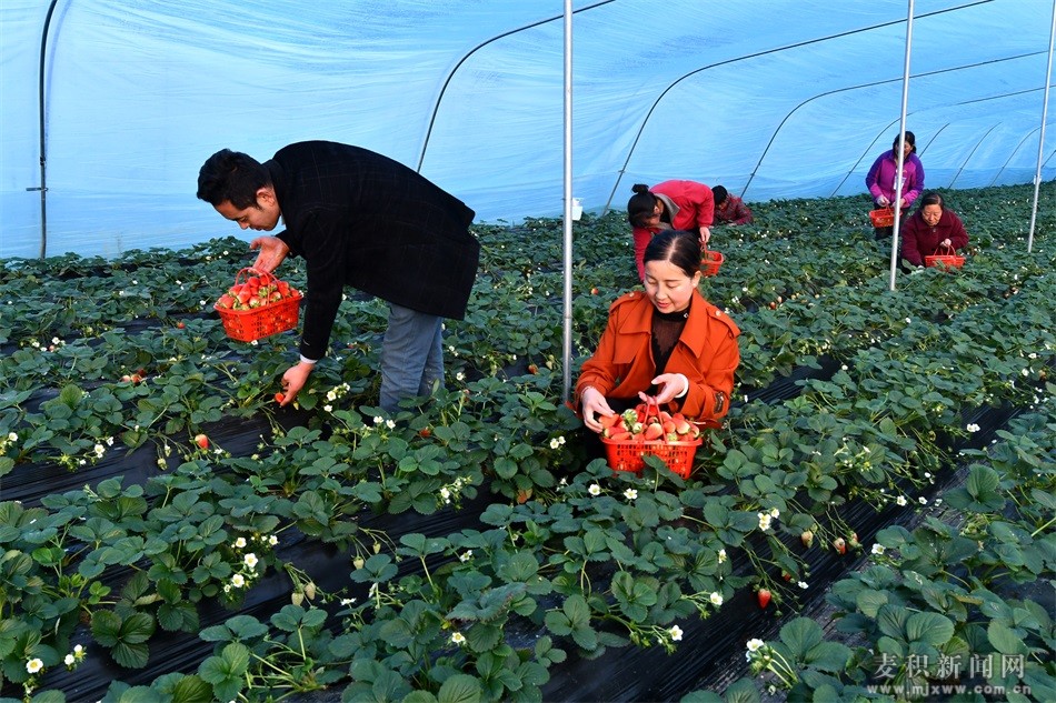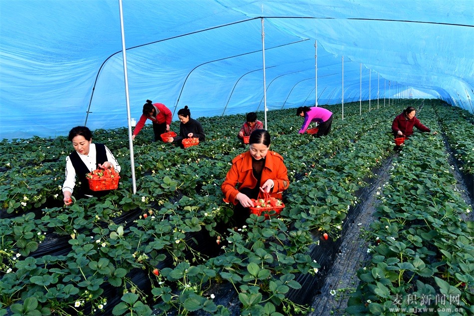 近年來,馬跑泉鎮(zhèn)慕灘村因地制宜,大力發(fā)展日光溫室設(shè)施大棚草莓種植高效農(nóng)業(yè)產(chǎn)業(yè),采摘價格在每斤50-60元的草莓,逐步鼓起了農(nóng)民致富增收的錢袋子,草莓種植也成為當?shù)刂︵l(xiāng)村振興的“莓”好產(chǎn)業(yè)!揪庉嫞簞⒚览颉