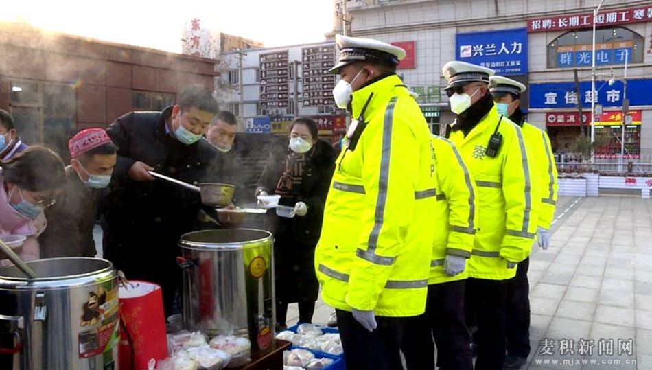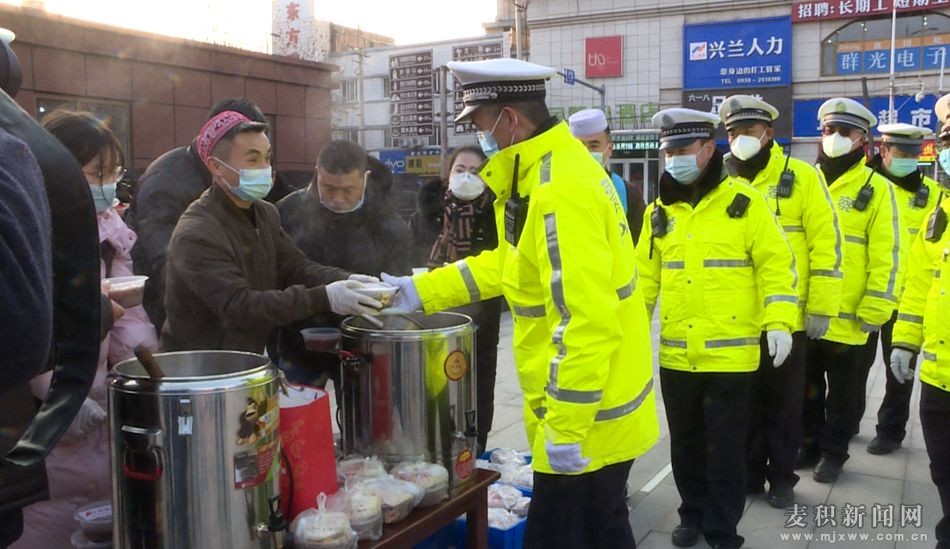 當(dāng)天上午9時,記者來到位于麥積區(qū)永興巷的馬玉林串串香店內(nèi),看到身著工作服的工作人員忙忙碌碌,正準(zhǔn)備著“臘八節(jié)”的愛心早餐。隨后,愛心企業(yè)、公益團(tuán)隊和志愿者將600余份菜夾餅、臘八粥送到“三站一場”工作人員及一線交警、城管隊員和環(huán)衛(wèi)工人手中。熱粥驅(qū)寒氣,真情暖人心。小小的臘八粥傳遞著濃濃的溫暖,溫暖了整個麥積城,進(jìn)一步激發(fā)了廣大交警、城管隊員和環(huán)衛(wèi)工人立足本職,以實(shí)際行動扮靚幸福美好新麥積的熱情。