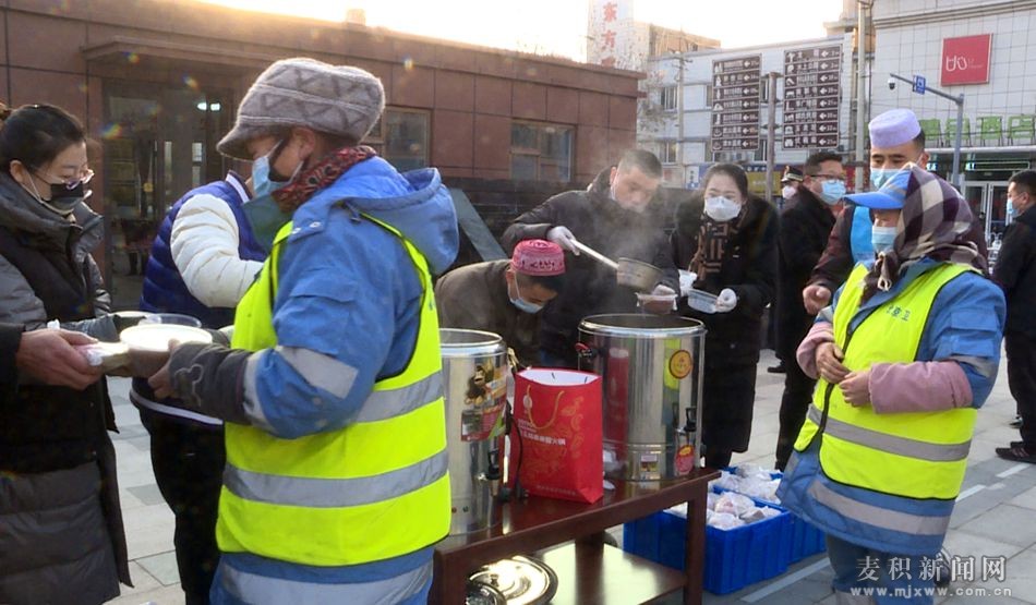 麥積區(qū)融媒體中心訊(記者 宋倩倩 劉秋鈺 王瑋瑕 王惠萍)1月10日是我國傳統(tǒng)節(jié)日“臘八節(jié)”,麥積區(qū)總工會攜手愛心企業(yè)開展“臘八節(jié)”愛心送粥活動,為麥積城區(qū)一線執(zhí)勤的交通警察、城管隊員、志愿者和環(huán)衛(wèi)工人們送去了熱氣騰騰的臘八粥、菜夾餅,讓他們在寒冬里感受到來自社會大家庭的溫暖和關(guān)愛。