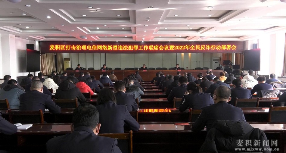 會議傳達(dá)了習(xí)近平總書記對打擊治理電信網(wǎng)絡(luò)詐騙犯罪工作的重要指示精神和習(xí)近平總書記對政法工作的重要指示精神;通報了麥積區(qū)2021年全區(qū)打擊治理電信網(wǎng)絡(luò)新型違法犯罪工作情況;對2022年全區(qū)打擊治理電信網(wǎng)絡(luò)新型違法犯罪工作和全民反詐行動進(jìn)行了安排部署。
