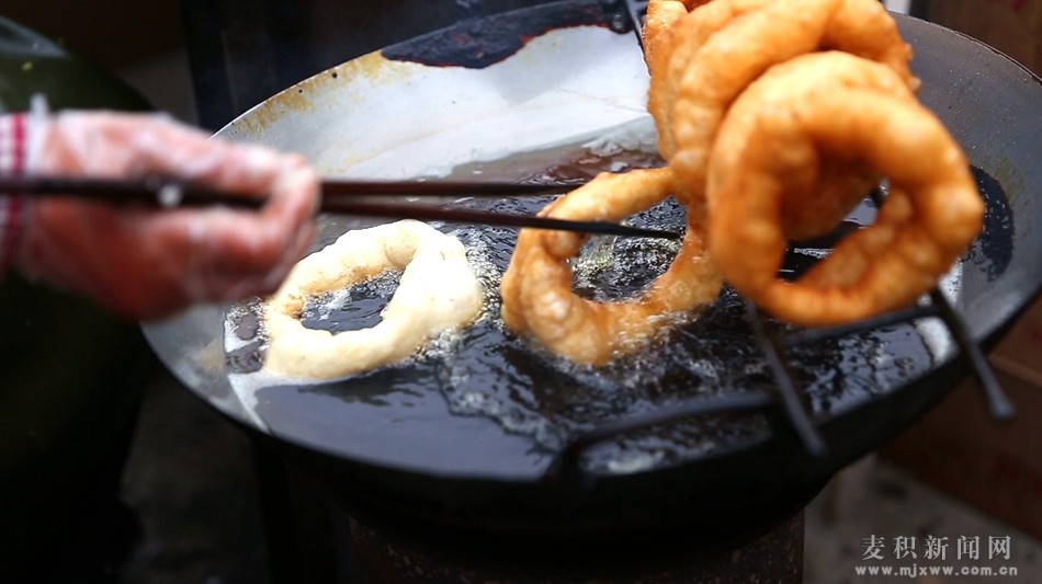 記者了解到,新陽(yáng)涼粉在當(dāng)?shù)丶欣锸穷H為有名的美食,它以其口感柔韌勁道深受當(dāng)?shù)厝说臍g迎,新陽(yáng)涼粉也是逢年過(guò)節(jié)餐桌上必不可少的美食。而當(dāng)?shù)氐挠腿θσ彩羌猩嫌忻男〕,它口感酥脆,色澤金黃,咸甜適中,可以說(shuō)一口涼粉一口圈圈,年味已經(jīng)四溢在唇齒之間。當(dāng)?shù)厝硕颊f(shuō),如果到新陽(yáng)鎮(zhèn)趕集,不來(lái)一口涼粉、不帶一兩個(gè)圈圈,就不是一趟完美的“跟集”。