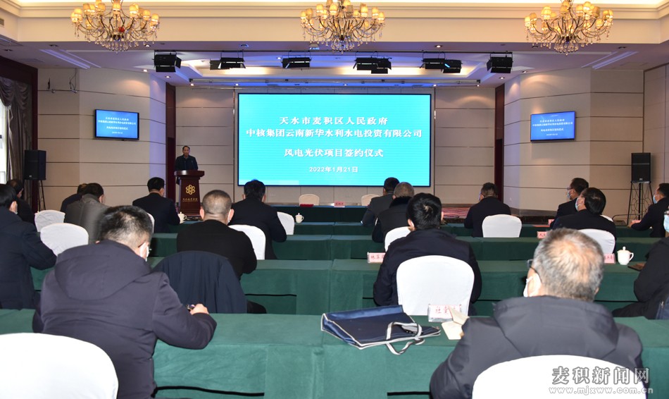 麥積區(qū)融媒體中心訊(記者 王雯 呂柄輝)1月21日,麥積區(qū)政府與中核集團云南新華水利水電投資有限公司簽訂風(fēng)電光伏項目框架合作協(xié)議。區(qū)委書記康泰來出席簽約儀式并講話,區(qū)委副書記、區(qū)長趙虎生主持簽約儀式,中核集團云南新華水利水電投資有限公司黨委書記、執(zhí)行董事周亞森出席簽約儀式并致辭。區(qū)領(lǐng)導(dǎo)趙繼文、高志強、陳書田、馬杰、張建鳳出席簽約儀式。