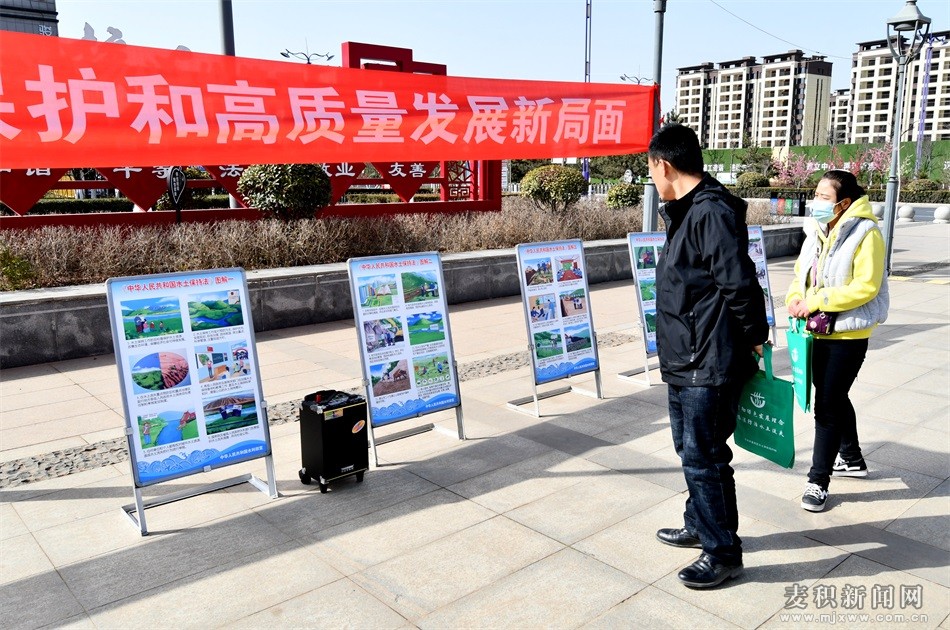 麥積區(qū)融媒體中心訊(特約記者 竇耀輝)3月1日是新《水土保持法》頒布實施11周年宣傳日。麥積區(qū)以“強化水土保持、建設(shè)生態(tài)文明、助力鄉(xiāng)村振興、建設(shè)美麗麥積”為主題的大型宣傳活動在馬跑泉市政廣場開展。此項活動旨在通過對新《水土保持法》的宣傳,進(jìn)一步增強群眾的水土保持意識,積極踐行“綠水青山就是金山銀山”的綠色發(fā)展理念,依法防治水土流失,加快生態(tài)文明建設(shè)步伐。