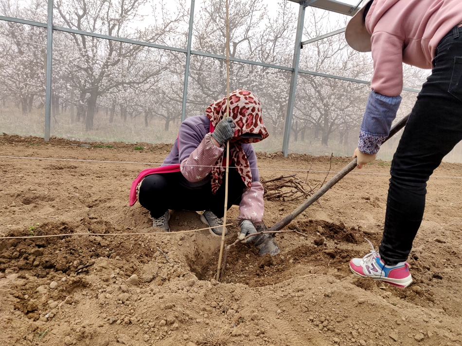 春回暖大地,萬物齊復(fù)蘇。在麥積區(qū)新陽鎮(zhèn)陽光玫瑰葡萄設(shè)施標準化栽培示范園里,果農(nóng)們正在搶抓農(nóng)時,揮鍬鏟土忙著移栽剛剛引進的優(yōu)質(zhì)葡萄苗“陽光玫瑰”。放眼望去,山川連綿起伏,連片的葡萄大棚順勢鋪開,一行行、一排排、一棵棵葡萄苗整齊排列,孕育著一片春的希望。