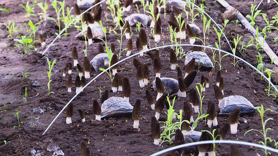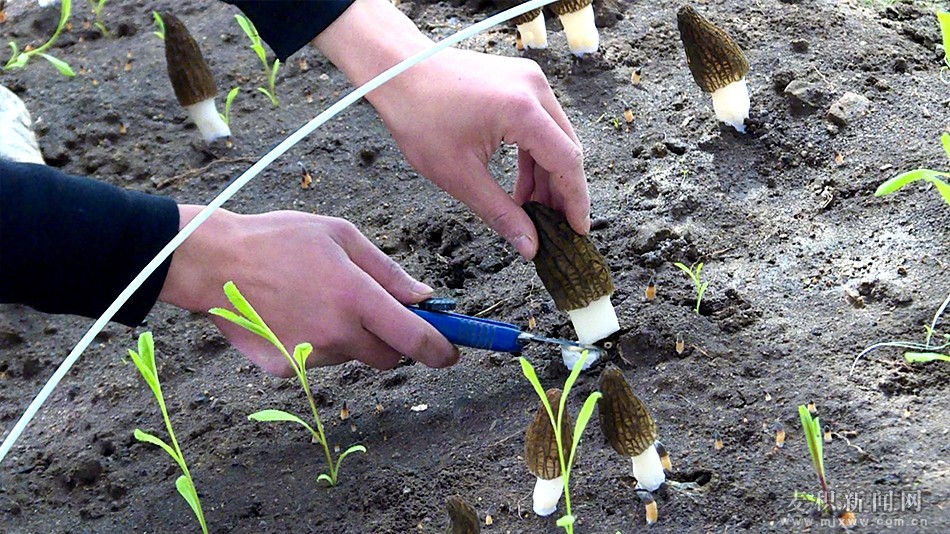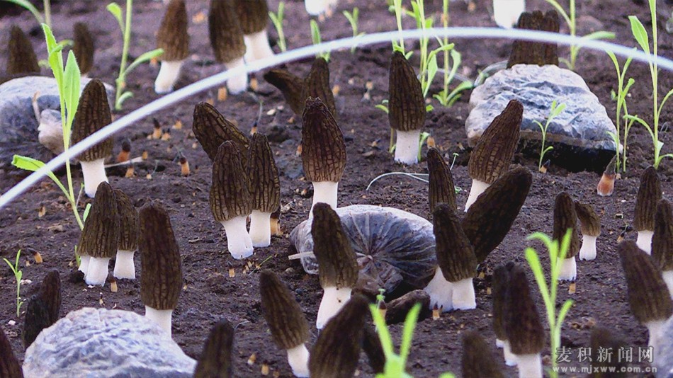 “從去年9月份開始收拾這里的地,進行殺蟲滅菌以及調(diào)整pH值,在10月底左右,將菌種下種,經(jīng)過了一個冬天,從今年3月份開始澆了一次出菇水,過了一個禮拜菇就出來了。經(jīng)過一段時間的管理,各方面挺好的。前段時間高溫天氣對羊肚菌危害很大,但是利橋鎮(zhèn)這里地理環(huán)境、氣候是很適合種植這個東西的!崩麡蜴(zhèn)羊肚菌基地負責人王斌說。