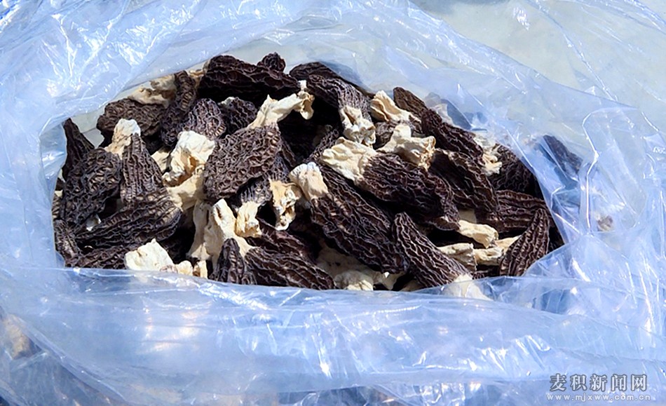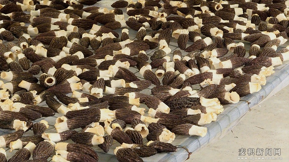 近日,記者來到麥積區(qū)利橋鎮(zhèn)的羊肚菌種植基地,放眼望去,十個大棚頂著遮陽網(wǎng)整整齊齊地排列著,走進羊肚菌種植大棚里,一朵朵羊肚菌像一把把小傘,密密麻麻地生長在潮濕的土壤上,錯落有致,緊密地簇擁在一起。王斌和工人戴好手套,穿上雨靴,在給大棚澆水,查看著羊肚菌的長勢情況。隨后,他蹲在壟溝里,手拿小刀,小心翼翼地采收著成熟的羊肚菌,并將采摘好的羊肚菌放在村里農(nóng)戶家的院子里進行晾曬風干。長勢良好的羊肚菌呈褶皺狀,撐開的菌蓋猶如一把小傘,也撐起了利橋村村民的“致富傘”。利橋村村民唐明生說:“我們在這羊肚菌種植基地打工,掙點錢補貼家用,在家跟前也方便,挺好的!