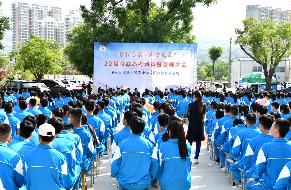 麥積區(qū)融媒體中心訊(通訊員 霍玉霞)5月24日,麥積區(qū)職業(yè)中等專業(yè)學校舉行以“青春無畏、逐夢揚威”為主題的備戰(zhàn)高考沖刺誓師大會,為麥積職專2020級學子們沖刺2023年高考加油助力。