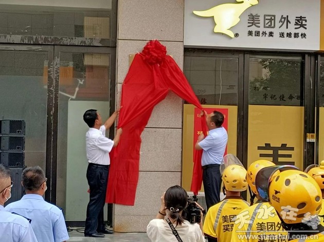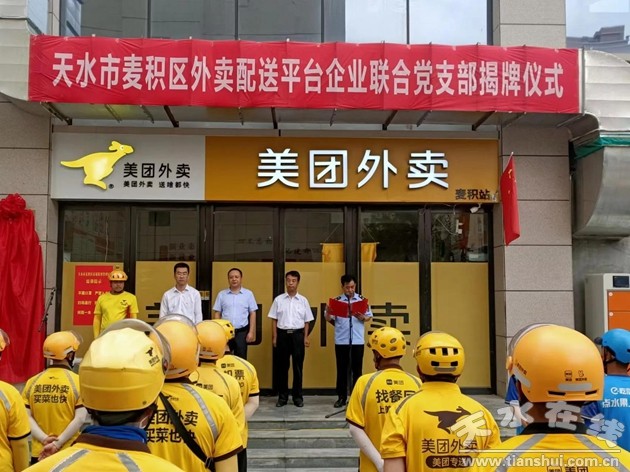 8月9日上午,天水市麥積區(qū)外賣配送平臺企業(yè)聯合黨支部舉行揭牌儀式。