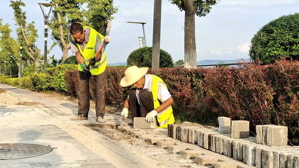 近日,記者來(lái)到麥積區(qū)隴昌路東段了解到,因該路段居民小區(qū)建成時(shí)間早,路面不少路磚已有破損現(xiàn)象,對(duì)此,區(qū)住建局安排的工作人員這幾天正在緊鑼密鼓地拆除路面舊磚、破磚,替換同色新磚,讓路面平整。并對(duì)部分區(qū)域加裝或改裝無(wú)障礙通道,以此保障市民的平安出行。與此同時(shí),在城區(qū)其他路段,工作人員還對(duì)行道樹(shù)進(jìn)行及時(shí)修剪整理,對(duì)檢查發(fā)現(xiàn)的部分壞死苗木則進(jìn)行補(bǔ)栽。