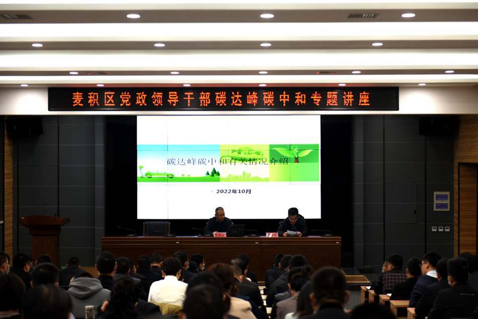 麥積區(qū)融媒體中心訊 為深入貫徹落實(shí)黨中央、國務(wù)院關(guān)于碳達(dá)峰碳中和的重大戰(zhàn)略決策,認(rèn)真落實(shí)中央組織部等部門《關(guān)于加強(qiáng)干部碳達(dá)峰碳中和教育培訓(xùn)的意見》,切實(shí)增強(qiáng)全區(qū)黨政領(lǐng)導(dǎo)干部推動(dòng)綠色低碳發(fā)展的本領(lǐng),提高做好碳達(dá)峰碳中和工作的能力,10月28日,麥積區(qū)舉辦碳達(dá)峰碳中和專題講座。