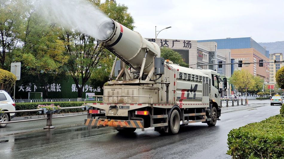 天水京環(huán)麥積作業(yè)中心機掃隊專項負責人胡元琪說:“我們從早上7點開始到夜間11點30分,一直持續(xù)開展灑水抑塵噴霧作業(yè),作業(yè)頻次為灑水11次、噴霧抑塵7次。同時對城區(qū)的主次干道進行壓塵作業(yè),作業(yè)面積達到200余萬平方米!