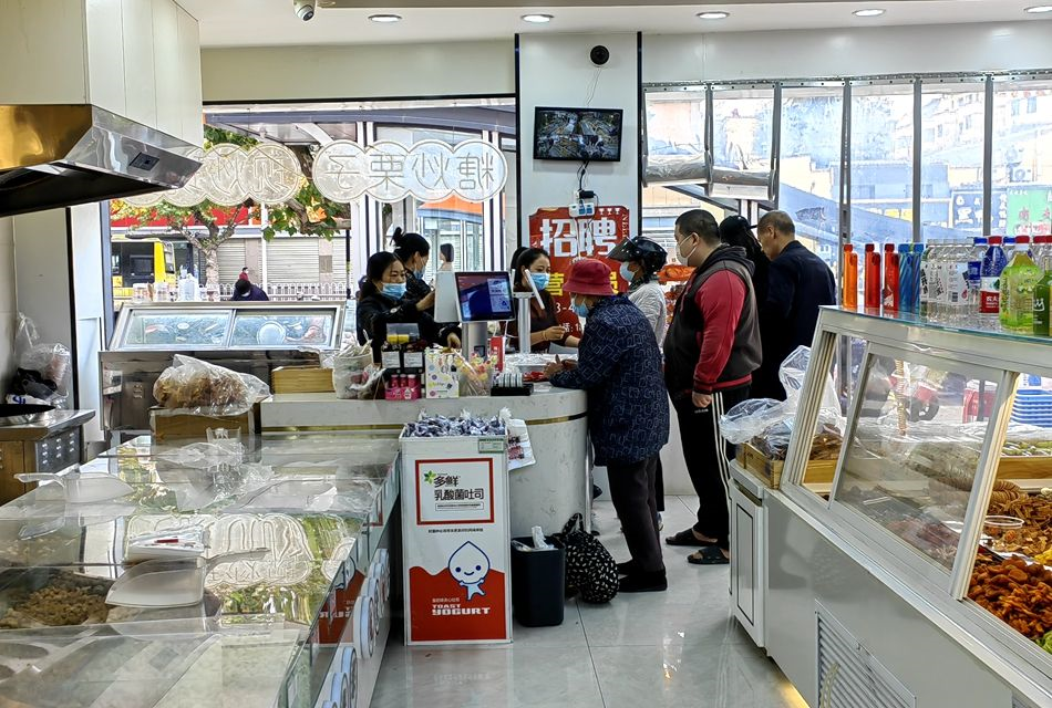 “我們店里的炒貨零食比較齊全,現(xiàn)在天冷了,我們的糖炒栗子、烤蜜薯都很受歡迎!碧鞂毘簇浀陠T王明霞說。