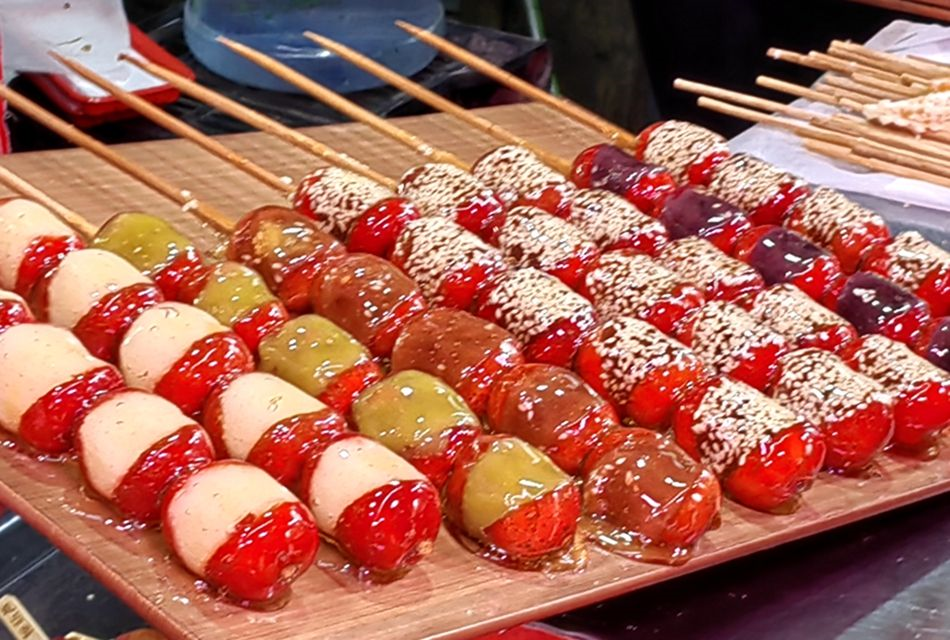 “我們家的冰糖葫蘆都是現(xiàn)做現(xiàn)賣。除了傳統(tǒng)的口味外,今年另外增加了板栗的,紫薯的,紅豆沙的,還有糯米的,都是采用現(xiàn)在時令的水果當食材,價格不貴,造型也特別獨特,大人小孩兒都喜歡吃。”董胖子水果干炒店店員和潤紅說。