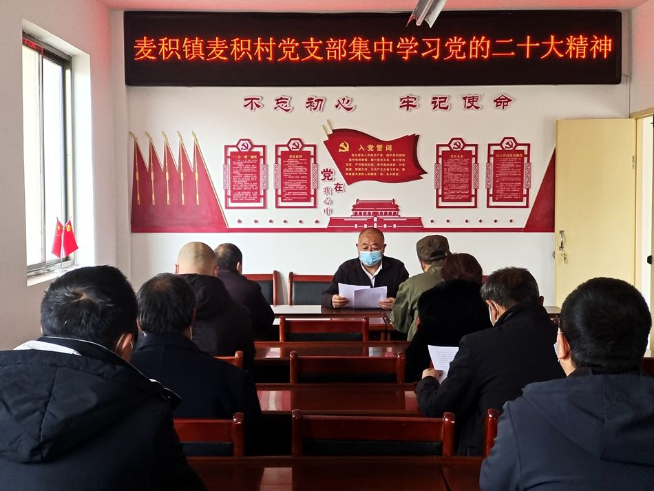 “我們麥積村黨支部深入學(xué)習(xí)貫徹黨的二十大精神,通過召開宣講會和組織主題黨日活動,引導(dǎo)黨員干部群眾集中學(xué)習(xí),并制作黨的二十大報告應(yīng)知應(yīng)會知識測試題,幫助黨員干部更好地學(xué)習(xí)掌握黨的二十大精神實質(zhì),受到了黨員群眾的歡迎!丙湻e村黨支部書記兼村委會主任劉拜紅說。