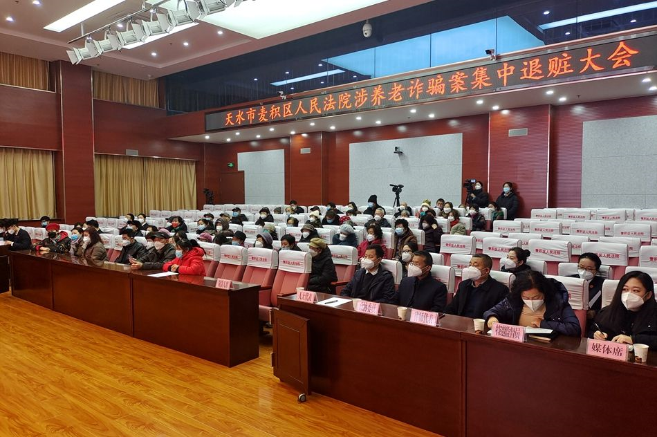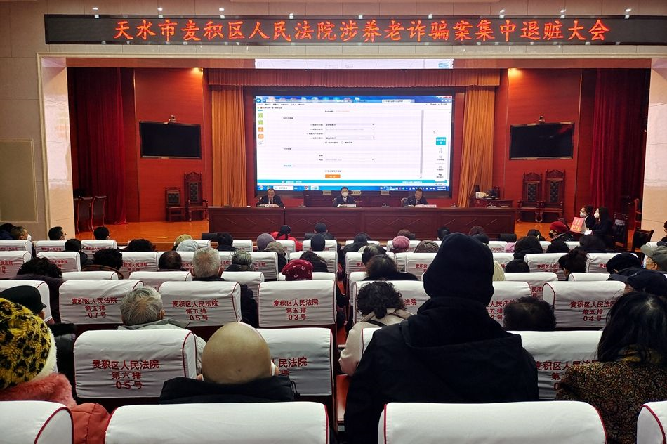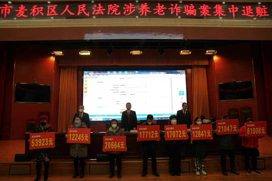 麥積區(qū)融媒體中心訊(記者 吳雪镕 王博雅 實習(xí)記者 田錦華)1月13日下午,全市首例涉養(yǎng)老詐騙案件集中退贓大會在麥積區(qū)人民法院第一審判庭舉行,將在審理鮑某某、洪某集資詐騙一案中追回的54萬余元贓款現(xiàn)場全部返還給99名受害群眾。