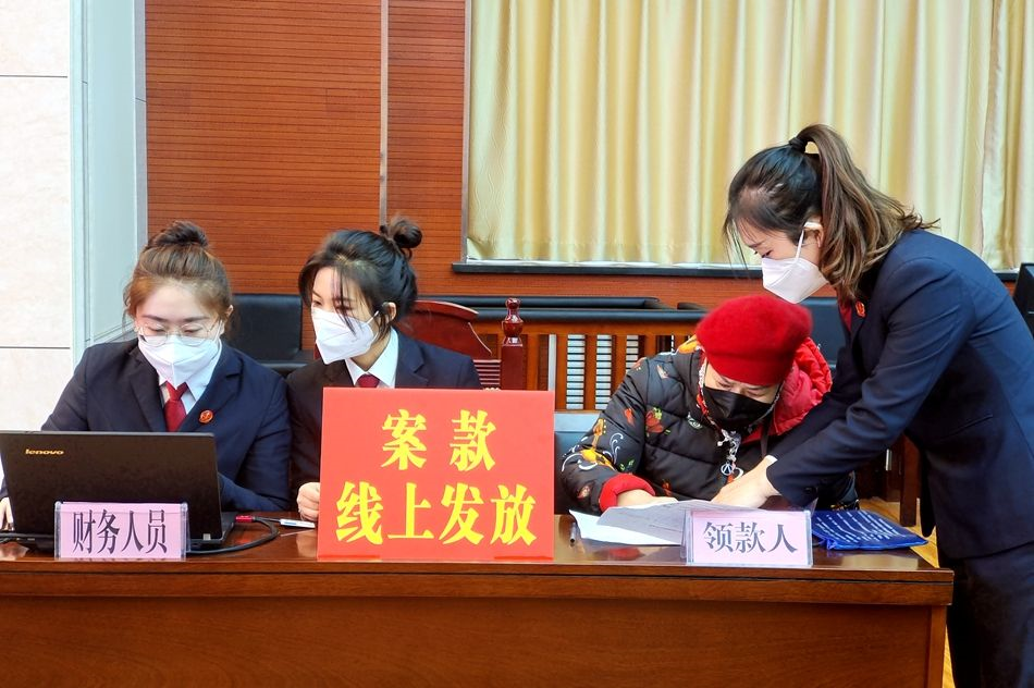 退贓大會現(xiàn)場,8名受害群眾代表上臺領(lǐng)取了案款發(fā)放牌。受害群眾依次上臺,簽名確認(rèn),工作人員通過線上打款的方式為全體受害人返還了涉案款。在簽名確認(rèn)后,60歲的陳阿姨獨(dú)自坐在法庭一角,不斷地刷新著手機(jī)銀行信息,期盼錢款早點(diǎn)打來。
