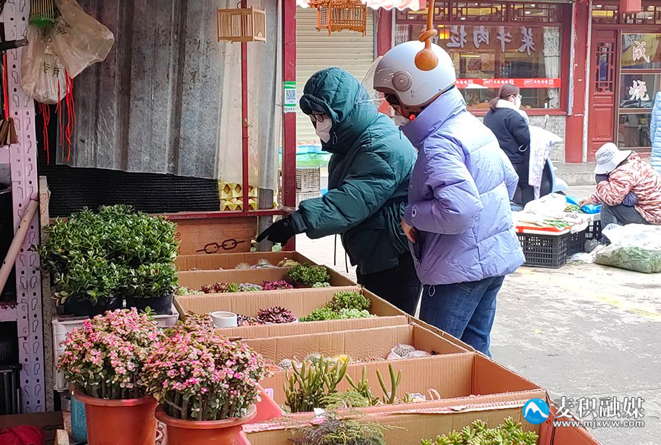 麥積區(qū)融媒體中心訊(記者 王惠萍 王瑋瑕)立春過(guò)后,天氣漸暖,麥積區(qū)花卉交易市場(chǎng)逐漸熱鬧起來(lái)。近日,記者來(lái)到麥積區(qū)仿古街的花卉市場(chǎng),放眼望去五顏六色的花卉競(jìng)相開(kāi)放,各類(lèi)綠植生長(zhǎng)茂盛,花卉市場(chǎng)“春意盎然”,不少市民趁著明媚的春光挑選花卉盆栽點(diǎn)綴生活,各種綠植、花卉的銷(xiāo)售也“熱”了起來(lái)。
