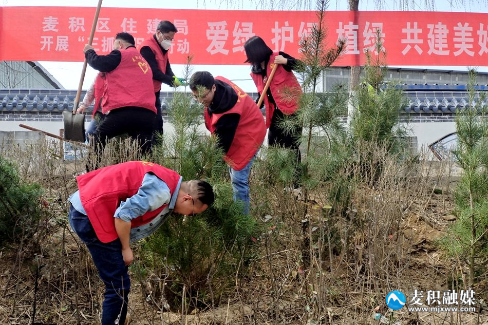 麥積區(qū)住建局園林建設服務中心技術股股長夏海濱告訴記者:“為進一步提高建設系統(tǒng)職工植樹造林、保護環(huán)境的意識和全局的凝聚力,今天下午,住建局以‘三抓三促’行動為契機,組織干部職工80余人,在麥積區(qū)九峪溝排洪渠西側坡面開展義務植樹活動。此次活動共栽植白皮松1000余株!薄揪庉 劉妞】