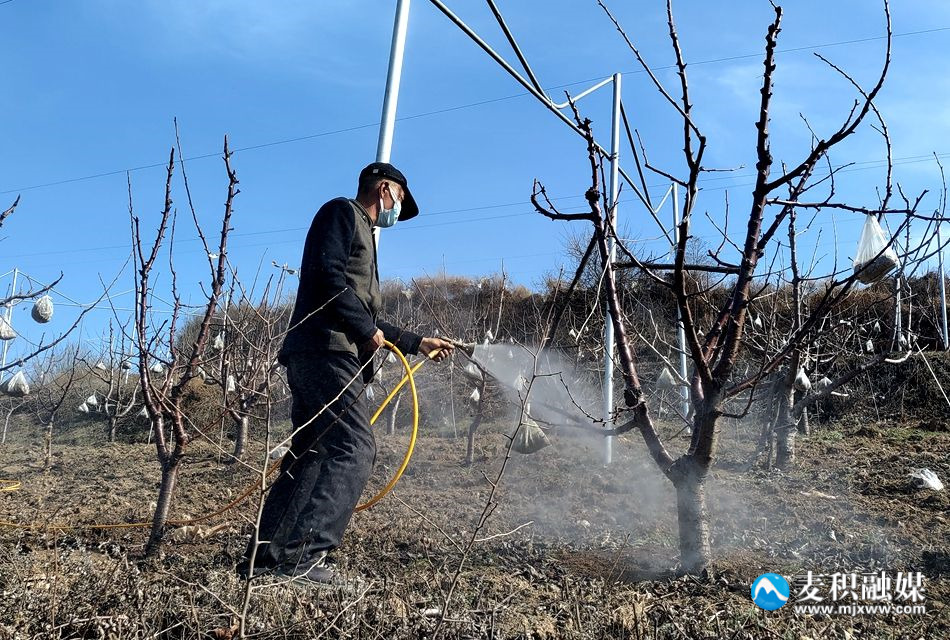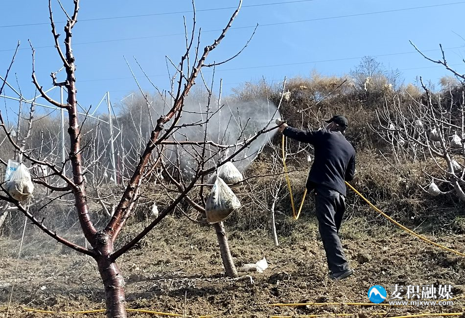 農(nóng)時(shí)不等人。平整、耕地、噴灑農(nóng)藥……走進(jìn)位于麥積鎮(zhèn)楊何村的大櫻桃園,疏松的土地、含苞待放的果樹(shù)預(yù)示著新一年的豐收景象。楊何大櫻桃園管理員張拜祥正忙著和其他工作人員給修剪利索、施好肥料的果樹(shù)噴灑除蟲(chóng)滅菌藥,一幅人勤春早備耕忙的畫(huà)卷在楊何村的山谷徐徐展開(kāi)。