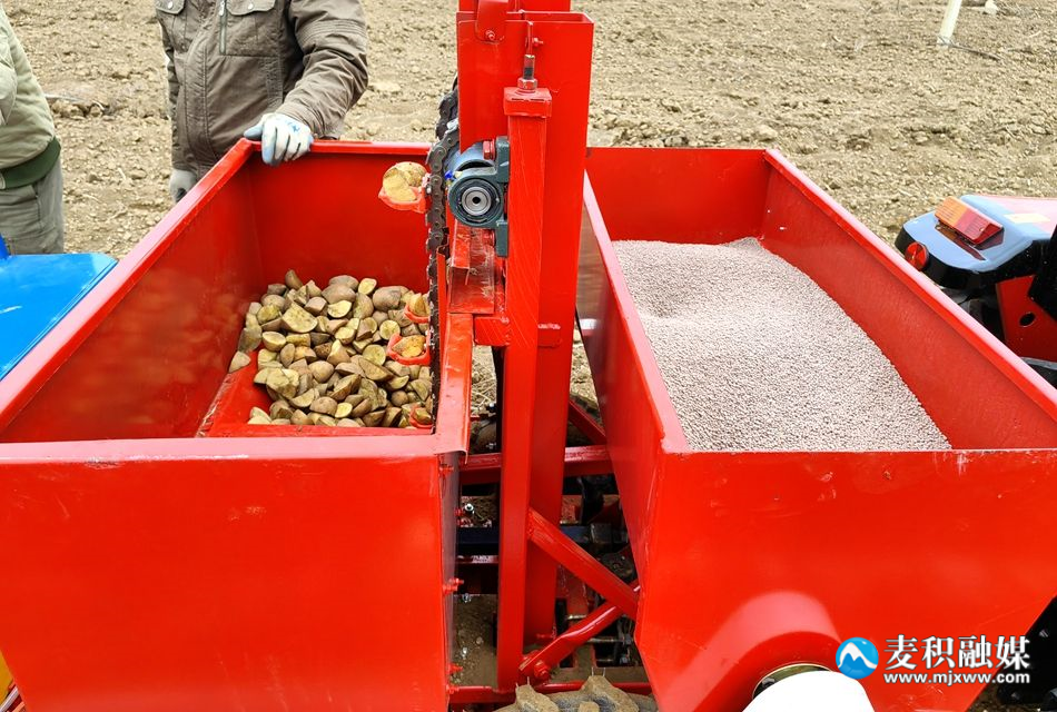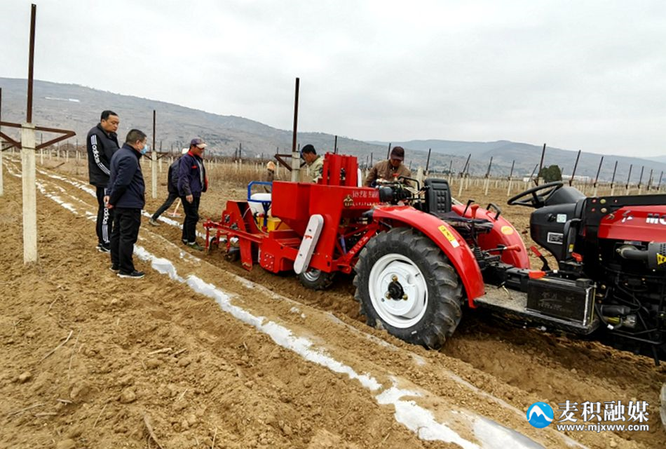據(jù)該合作社負(fù)責(zé)人介紹,今年合作社主要是利用基地里老化的葡萄樹挖改區(qū)域和葡萄閑置行道種植新品種馬鈴薯,為此合作社還專門購置了最新一代的馬鈴薯一體化播種機(jī)。施肥、播種、覆膜、起壟一氣呵成,大大增加了種植速度和效率,還保證了種植的品質(zhì)。