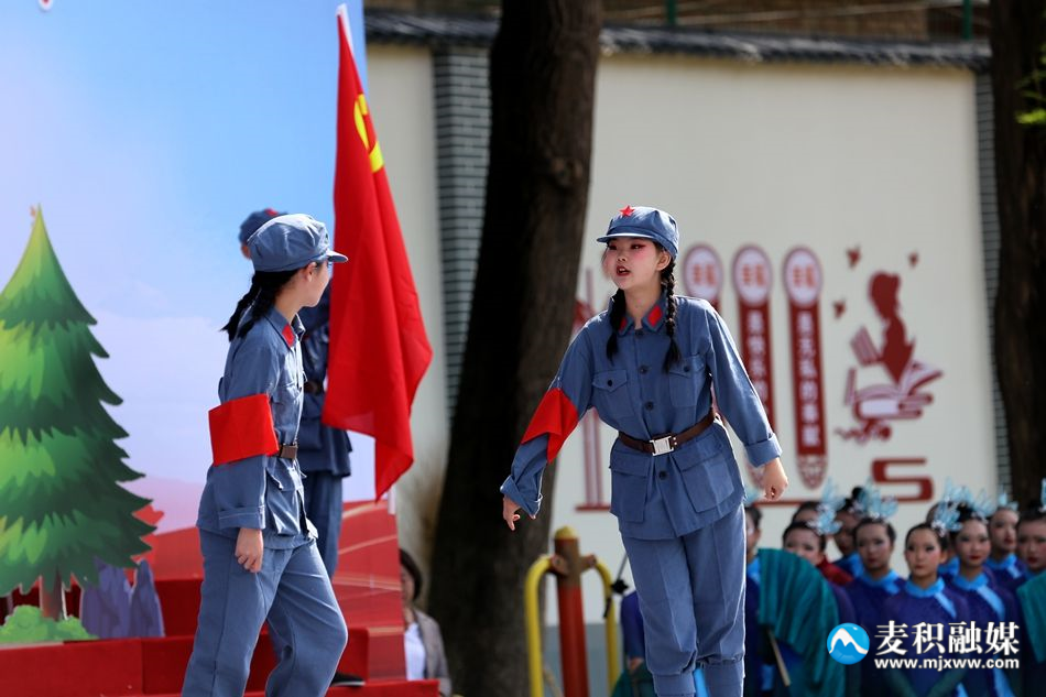 在青草茵茵的操場(chǎng)上,同學(xué)們手拿紅旗和“喝彩”向日葵端坐著等待展演開(kāi)始。整場(chǎng)展演共13個(gè)節(jié)目,各校代表隊(duì)的演員們精神抖擻,為大家?guī)?lái)了創(chuàng)意滿滿、豐富多彩的原創(chuàng)節(jié)目。麥積區(qū)區(qū)府路小學(xué)的大型歌舞表演《國(guó)風(fēng)就是潮流》拉開(kāi)展演活動(dòng)序幕。隨后,麥積區(qū)道南小學(xué)帶來(lái)的《向未來(lái)》歌曲表演、麥積區(qū)向榮學(xué)校的《戰(zhàn)臺(tái)風(fēng)》古箏合奏、麥積區(qū)實(shí)驗(yàn)小學(xué)表演的舞蹈《飛天神話》、麥積區(qū)天成學(xué)校帶來(lái)的情景舞蹈劇《半條棉被》、天水市七中的舞蹈《敦煌印象》和麥積區(qū)社棠中心學(xué)校的情景舞《堅(jiān)守·逐夢(mèng)》等節(jié)目,都展現(xiàn)出了新時(shí)代中小學(xué)生全面發(fā)展、奮發(fā)昂揚(yáng)的精神風(fēng)貌。