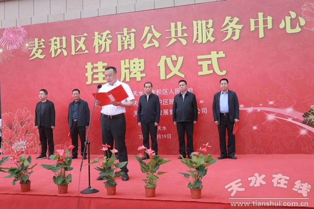 5月19日,麥積區(qū)橋南公共服務(wù)中心(福安堂)正式掛牌成立。天水市民政局局長剡海明,市政府國資委主任曹秀明共同為麥積區(qū)橋南公共服務(wù)中心揭牌。麥積區(qū)委常委、組織部部長王軍龍出席儀式并致辭,天水民生發(fā)展集團(tuán)有限公司董事長李子?xùn)|代表項(xiàng)目建設(shè)運(yùn)營方作表態(tài)發(fā)言,區(qū)政府副區(qū)長、公安分局局長王禳虎主持儀式。