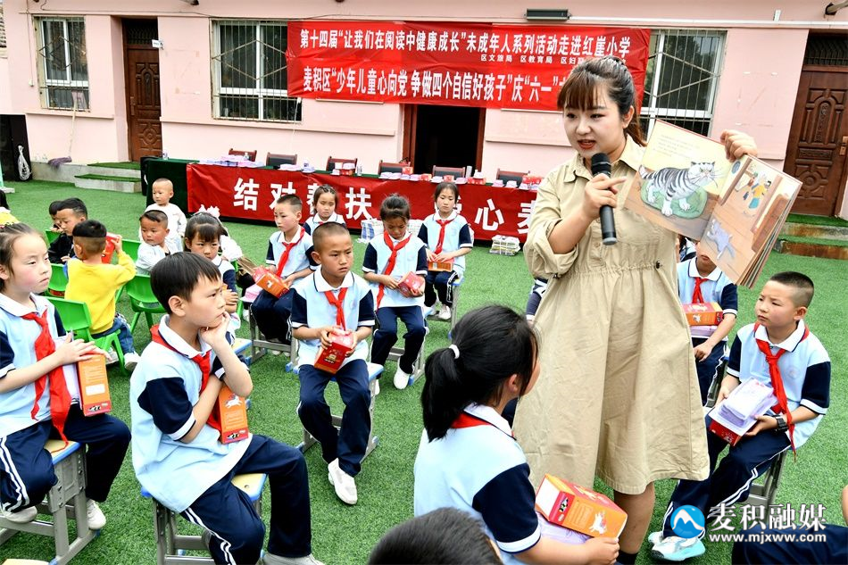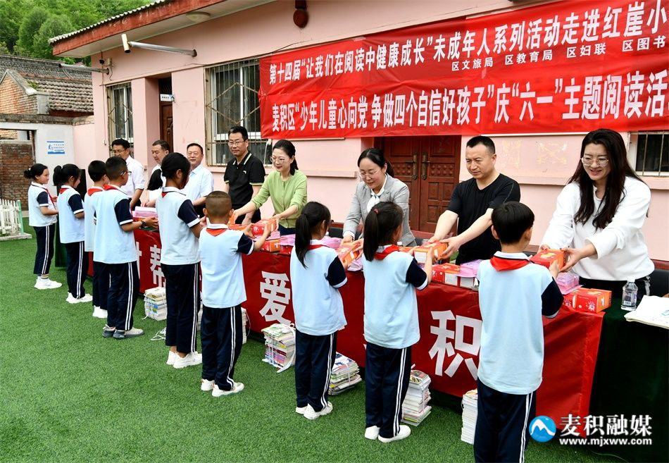 麥積區(qū)融媒體中心訊(特約記者 竇耀輝)在“六一”國際兒童節(jié)即將來臨之際,5月30日,麥積區(qū)圖書館聯(lián)合區(qū)教育局、區(qū)婦聯(lián)走進麥積鎮(zhèn)紅崖小學,開展第十四屆“讓我們在閱讀中健康成長”未成年人系列活動暨“少年兒童心向黨 爭做四個自信好孩子”慶“六一”主題閱讀活動,讓山村的孩子們在品味書香、快樂閱讀中歡度自己的節(jié)日,進一步推動書香校園建設步伐。