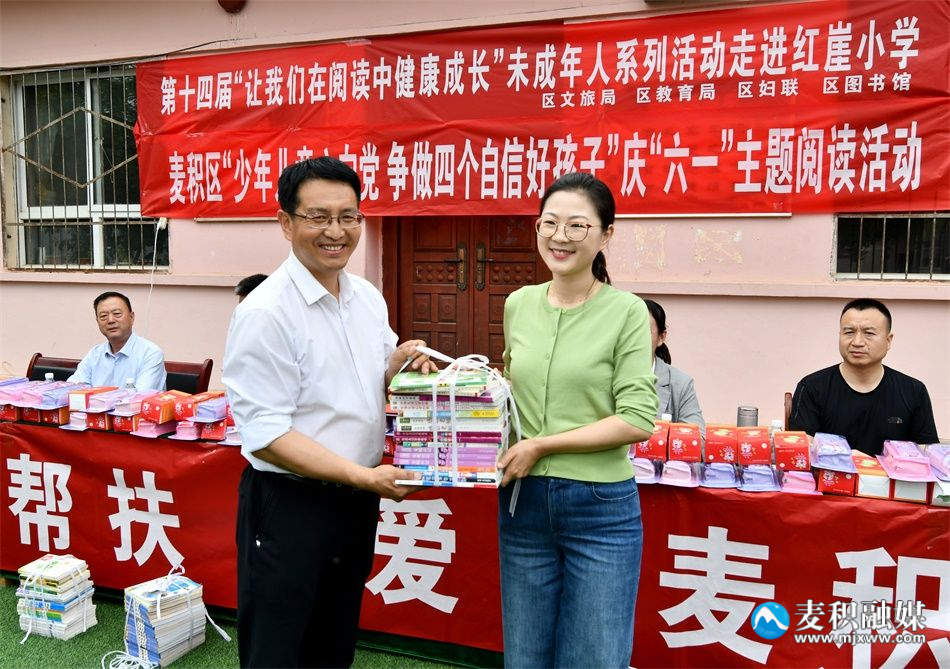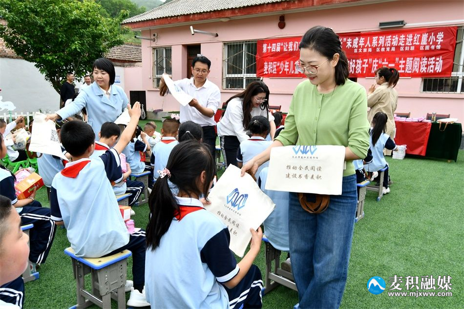 活動中,麥積區(qū)圖書館向紅崖小學贈送圖書100冊、期刊100冊,為孩子們贈送文創(chuàng)手提袋、筆袋;區(qū)婦聯(lián)為該校全體學生贈送了水杯和學習文具。活動還通過“小吳姐姐”講故事、經典誦讀、做趣味游戲等內容豐富、形式新穎、寓教于樂的活動給孩子們送去了節(jié)日的祝福,享受閱讀帶來的快樂。
