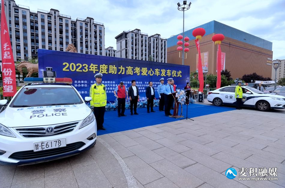 麥積區(qū)融媒體中心訊(記者 劉秋鈺 董潔 實習記者 張歐陽)為了推進麥積區(qū)新時代文明實踐工作,助力創(chuàng)建全國文明城市,弘揚和踐行志愿服務精神,5月31日,由天水市工商聯(lián)、麥積公安分局交警大隊、天水市婚慶行業(yè)協(xié)會主辦,麥積區(qū)新時代文明實踐中心志愿服務總隊、天水市應急救援協(xié)會承辦的“天水市2023年度助力高考愛心車發(fā)車儀式”在麥積區(qū)馬跑泉市政廣場舉行。
