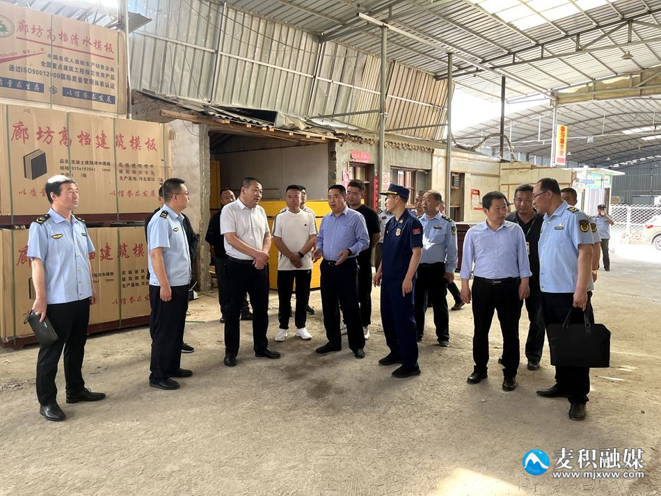 麥積區(qū)融媒體中心訊(記者 姚嘉。樯羁碳橙 5.27”湖南長(zhǎng)沙物流園倉庫火災(zāi)事故教訓(xùn),切實(shí)加強(qiáng)建材行業(yè)安全監(jiān)管力度,提高消防安全管理水平及火災(zāi)應(yīng)急處置能力,以“三抓三促”行動(dòng)和“主動(dòng)創(chuàng)穩(wěn)”行動(dòng)為抓手,確保安全生產(chǎn)形勢(shì)保持穩(wěn)定,5月30日至31日,麥積區(qū)委常委、政法委書記李東海,區(qū)政府副區(qū)長(zhǎng)、公安分局局長(zhǎng)王禳虎帶領(lǐng)區(qū)應(yīng)急局、商務(wù)局、市場(chǎng)監(jiān)管局、消防救援大隊(duì)、橋南辦等部門單位負(fù)責(zé)人,并邀請(qǐng)工貿(mào)、電力行業(yè)領(lǐng)域注冊(cè)安全工程師,采取行政執(zhí)法+專家服務(wù)的方式,集中對(duì)橋南建材市場(chǎng)木材區(qū)開展聯(lián)合安全生產(chǎn)大檢查。
