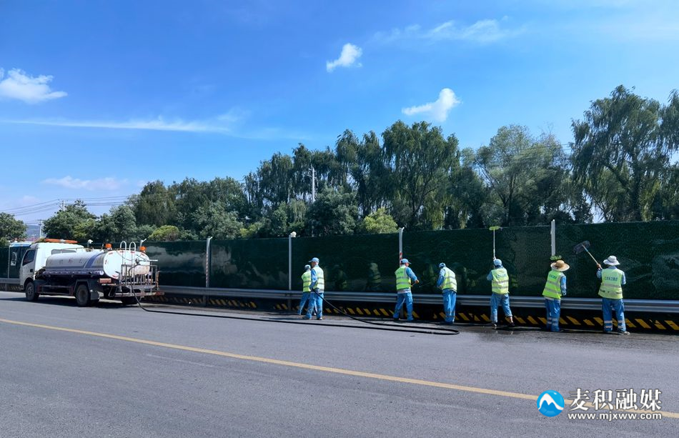 天水京環(huán)集團(tuán)麥積作業(yè)中心羲皇片區(qū)片長邢小云告訴記者,自5月31日起,羲皇片區(qū)組織了80名保潔員,調(diào)配3輛灑水車和2輛高壓沖洗車,對片區(qū)重要路段和點(diǎn)位進(jìn)行全面沖洗!胺謩e對二十里鋪大橋隔離欄和雙黃線、高鐵南站道路中間隔離欄、羲皇大道沿線有軌電車項(xiàng)目工地護(hù)板、圍擋、電箱、護(hù)欄底下瓷磚,天秀橋護(hù)欄、人行道以及高速輔道沿線野草雜物、綠色圍擋等重點(diǎn)路段、重要點(diǎn)位進(jìn)行全面沖洗、全方位整治,盡心盡力為廣大市民及外來游客創(chuàng)造干凈整潔的出行和旅游環(huán)境!
