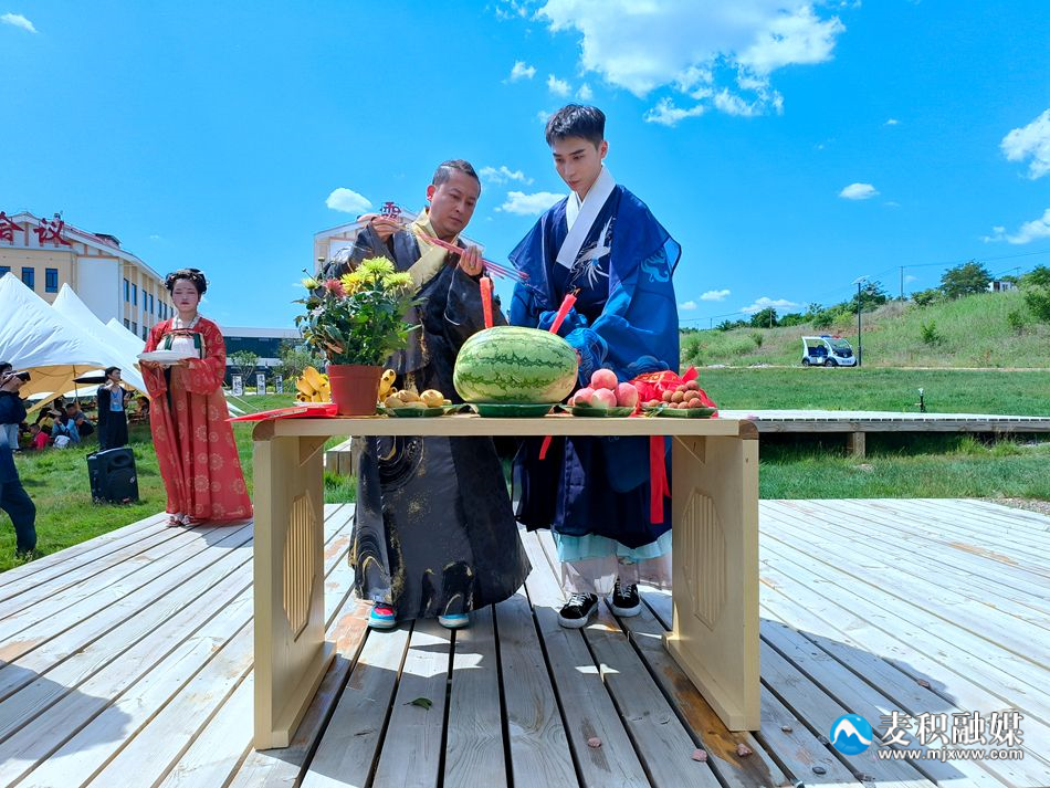 萬紫千紅披錦繡,霓裳漢韻譜華章。游園會現(xiàn)場,活動參與人員皆身著漢服,或繁或雅,“穿越時空”感受傳統(tǒng)文化的魅力。凈手、點(diǎn)雄黃、領(lǐng)取游園示意圖后,游園者齊聚望山星舍露營基地進(jìn)行儀式感十足的屈原祭拜活動,正式開啟游園之旅。