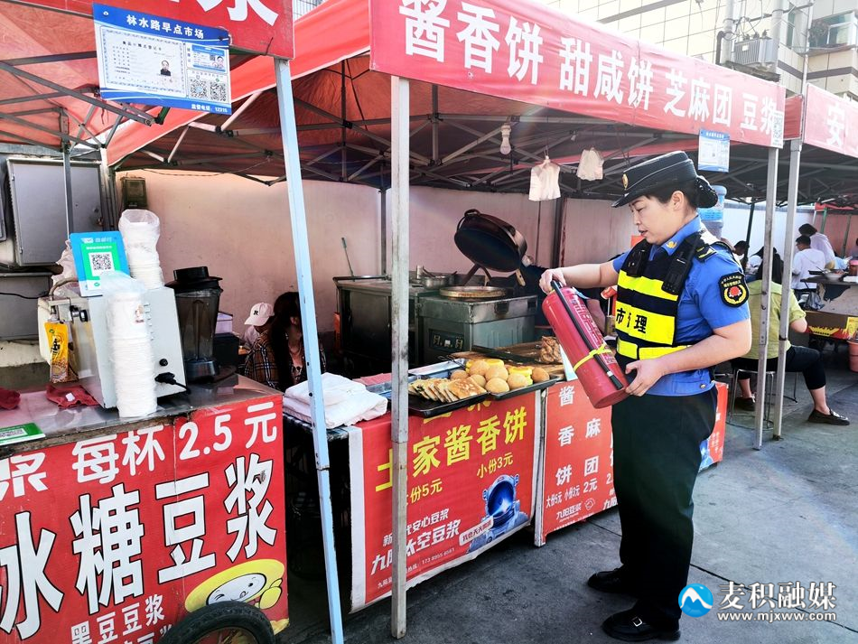 早晨7點,麥積區(qū)林水路早點市場迎來用餐高峰,市場里煙火氣升騰。伴著商戶的叫賣聲,區(qū)城管局的市場管理工作人員早早地來到每個攤位前開展每日安全大檢查,重點對液化氣罐的擺放位置、安檢時間、生產(chǎn)編號、安全閥門、合格標志和使用不合格現(xiàn)場糾正,同時,認真仔細地向商戶普及燃氣安全知識和注意事項。