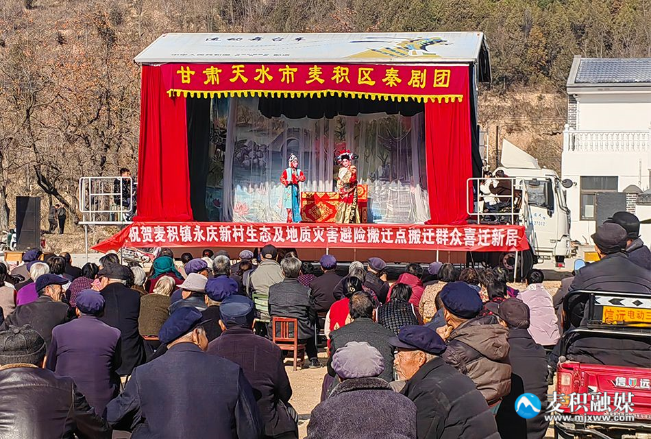 “麥積鎮(zhèn)2023年生態(tài)及地質(zhì)災(zāi)害避險搬遷項目共計實施66戶,其中集中安置17戶,現(xiàn)已全部完成入住。今天我們還為群眾開展了三送活動,一送中堂、二送字畫、三送演出。我們邀請區(qū)文聯(lián)老師為搬遷群眾每戶送了一幅中堂和一幅字畫,邀請區(qū)秦劇團為搬遷戶送來戲曲演出,讓群眾切切實實感受到黨的溫暖,讓群眾搬得舒心,住得安心。”麥積鎮(zhèn)公共事務(wù)服務(wù)中心主任趙晶晶說。