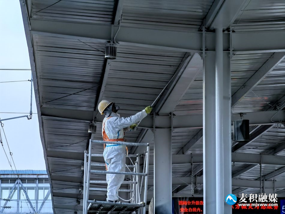 “目前,三站臺(tái)改造工程6道側(cè)的站臺(tái)面已經(jīng)完工,正在進(jìn)行5道側(cè)站臺(tái)的雨棚涂裝和現(xiàn)場(chǎng)老舊站臺(tái)的鑿平工作,F(xiàn)場(chǎng)安全方面,我們采用挖機(jī)用限位器控制它的高度,減少安全風(fēng)險(xiǎn)。針對(duì)施工空間窄、作業(yè)距離長(zhǎng)的問題,我們通過板車運(yùn)輸材料,人工集中裝袋以后再運(yùn)至貨場(chǎng),貨場(chǎng)再運(yùn)至施工現(xiàn)場(chǎng)!敝需F八局天隴鐵路Ⅰ標(biāo)一分部現(xiàn)場(chǎng)施工負(fù)責(zé)人王建安介紹說(shuō)!揪庉 曹寧】
