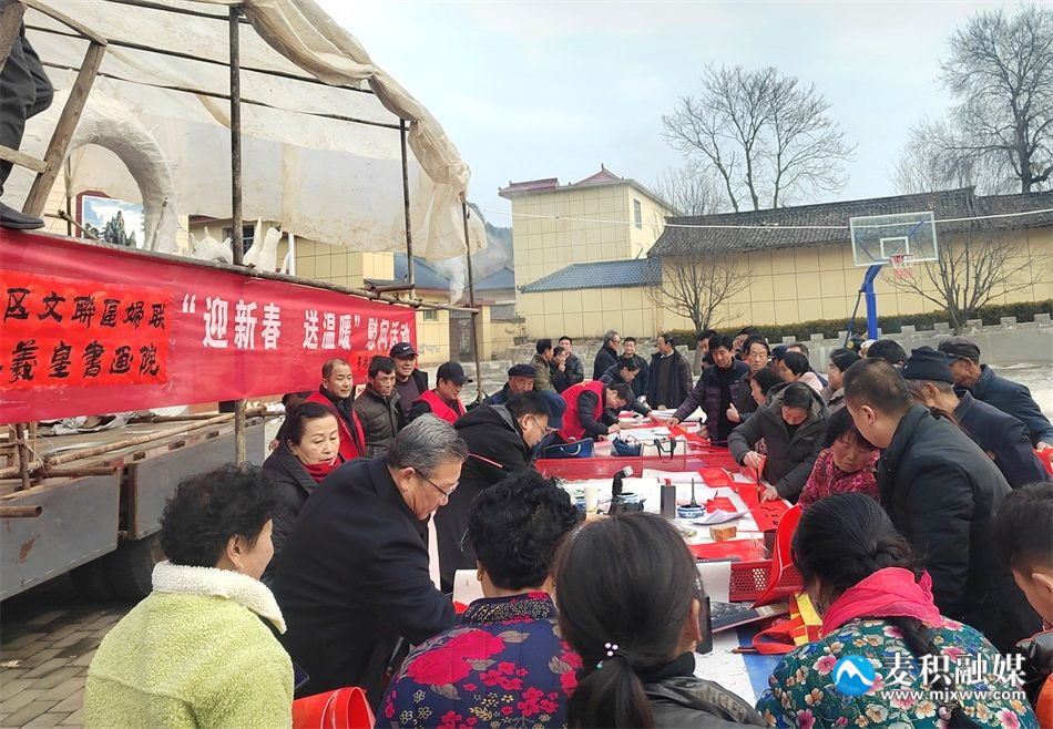 麥積區(qū)融媒體中心訊(特約記者 竇耀輝 實習記者 竇藝)為大力弘揚中華優(yōu)秀傳統(tǒng)文化,營造濃厚的節(jié)日氛圍,2月1日,麥積區(qū)文聯(lián)、區(qū)婦聯(lián)攜手天水羲皇書畫院走進麥積鎮(zhèn)紅崖村開展“迎新春、送祝福”主題活動。