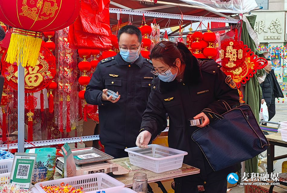 “我們組織執(zhí)法人員對二馬路步行街年貨市場的計(jì)量器具及食品安全進(jìn)行監(jiān)督檢查,對計(jì)量器具進(jìn)行了現(xiàn)場鑒定,同時對年貨進(jìn)行了索票索證的查驗(yàn),確保食品安全。”麥積區(qū)市場監(jiān)督管理局消保股工作人員劉璐說。