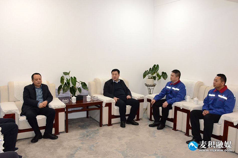 麥積區(qū)融媒體中心訊(記者宋倩倩馬玉婷)新春佳節(jié)即將來臨之際,2月6日,區(qū)委副書記、區(qū)長(zhǎng)趙虎生帶領(lǐng)區(qū)直相關(guān)部門,走訪慰問中核新華黃龍抽水蓄能發(fā)電有限公司、天隴鐵路公司、天水云華新能源有限公司,看望慰問重大項(xiàng)目建設(shè)單位和協(xié)調(diào)保障一線干部,為他們送去慰問品以及黨和政府的溫暖關(guān)懷。區(qū)委常委、常務(wù)副區(qū)長(zhǎng)安偉,區(qū)人大常委會(huì)副主任蒲海濱一同慰問。
