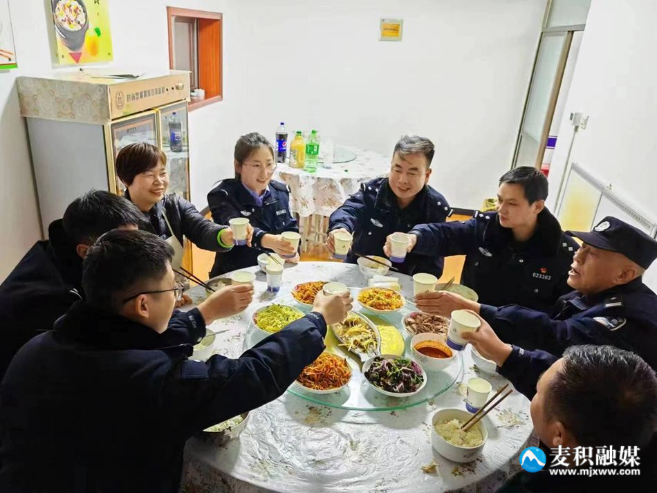 麥積區(qū)融媒體中心訊 在萬家燈火通明、熱鬧非凡的除夕之夜,天水市公安局麥積分局各個轄區(qū)派出所里卻上演著別樣的溫情,雖然這里沒有家人團(tuán)聚的歡聲笑語,卻有著民輔警們肩負(fù)責(zé)任、堅守崗位的堅毅與執(zhí)著。除夕夜,堅守崗位的民輔警們把年夜飯從家里“搬”到了所里,共同守護(hù)城市的平安。