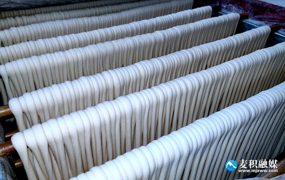 麥積區(qū)融媒體中心訊(記者 任澤瑄 王惠萍)春節(jié)前夕正是麥積區(qū)甘泉鎮(zhèn)廖莊村加工掛面的黃金季,也是家家戶戶制作掛面最忙碌的時候。此時的廖莊村,處處彌漫著濃郁的面香,一排排懸掛著的手工掛面如一道道金黃的綢緞在面架上隨風(fēng)飄動,成為冬日鄉(xiāng)村一道亮麗的風(fēng)景。
