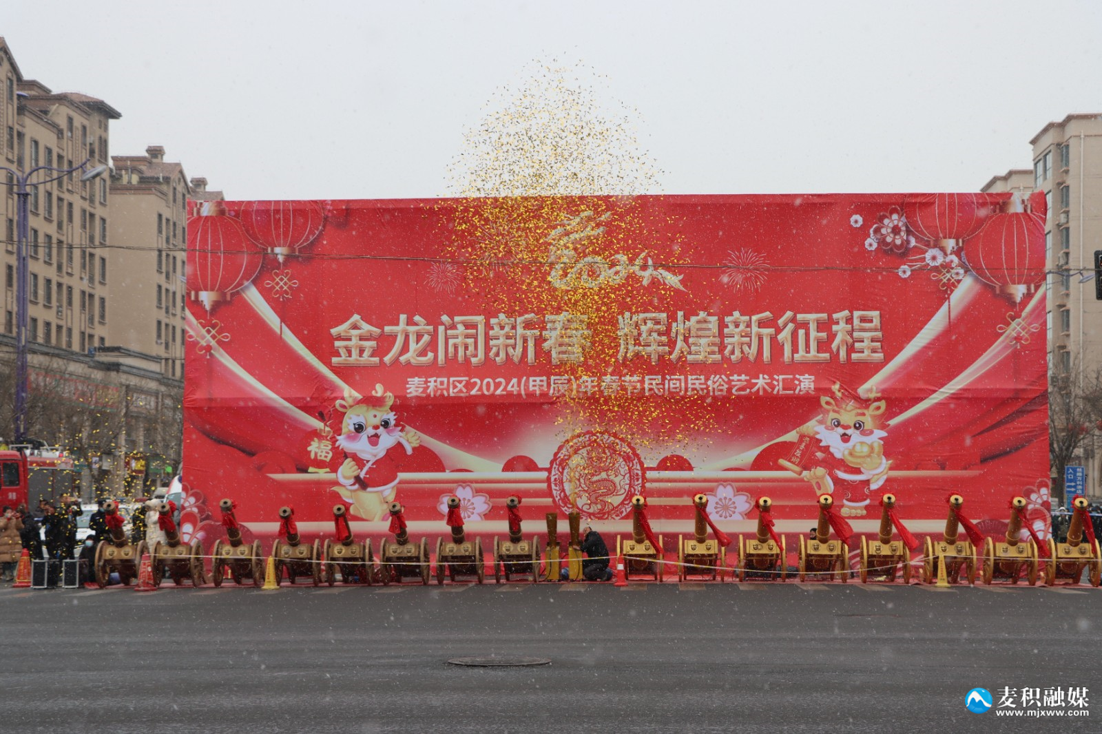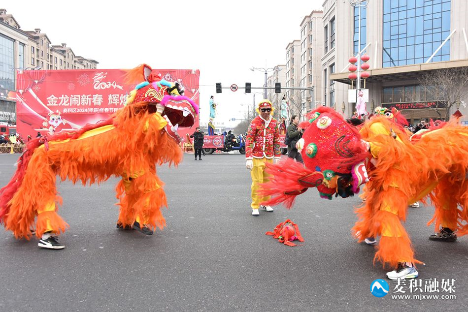 麥積區(qū)融媒體中心訊 2月22日(農(nóng)歷正月十三),麥積區(qū)舉行2024年傳統(tǒng)社火匯演活動(dòng),來自麥積鎮(zhèn)、甘泉鎮(zhèn)、花牛鎮(zhèn)、馬跑泉鎮(zhèn)、社棠鎮(zhèn)、道北街道、北道埠街道、橋南街道的社火表演隊(duì)伍帶著新春的問候和祝福隆重登場。舞龍、舞獅、旱船、武術(shù)、舞蹈、秧歌、腰鼓、彩車……身著盛裝的社火隊(duì)員個(gè)個(gè)精神抖擻,踏著鼓點(diǎn)盡情演繹,通過多種形式全面展現(xiàn)非物質(zhì)文化遺產(chǎn)、社火文化及傳統(tǒng)文化的獨(dú)特魅力。