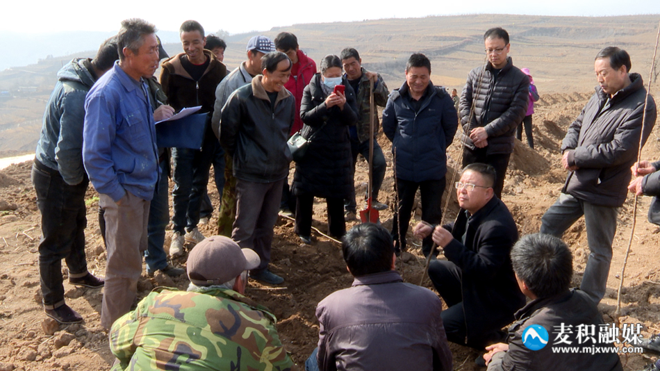 培訓(xùn)現(xiàn)場,市級專家組和麥積區(qū)果業(yè)中心技術(shù)人員深入花牛鎮(zhèn)九峪村、田窯村以及馬家灣果園改造提升示范點,采取現(xiàn)場教學(xué)的方式,就打點放線、挖坑、土壤改良、苗木定植、施肥澆水、覆膜、果園防災(zāi)減災(zāi)設(shè)施建設(shè)等方面進(jìn)行了全面細(xì)致講解,并手把手進(jìn)行了示范。培訓(xùn)過程中,專家們耐心解答果農(nóng)在果園日常管理中遇到的問題。