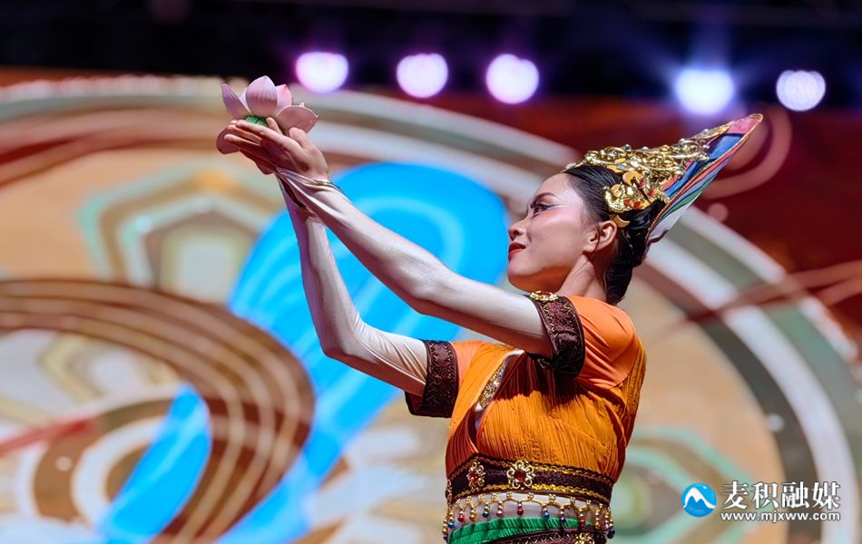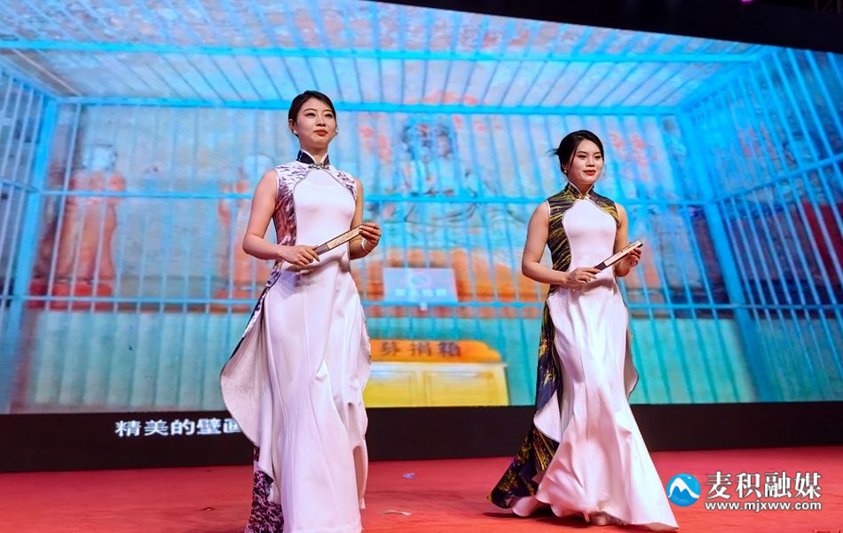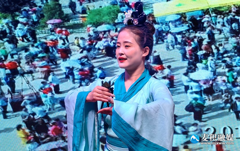 在民俗非遺展演結(jié)束后,各類歌舞文藝表演也輪番登場。舞蹈《一碗麻辣燙》以及歌手馬艷帶來的歌曲《天水麻辣燙》《人間天水》帶動了全場氣氛。“熱辣滾燙”的歌聲和舞姿,訴說著對天水的熱愛,更展示出天水人民的熱情好客和積極向上的精神風(fēng)貌。武術(shù)表演《渭川武魂》、秦腔表演《寧遠(yuǎn)秦韻》、綜藝《旗袍秀》,以及《青山綠水》《玉潤武山》《渭川福音》《采菊東籬下》《上春山》等節(jié)目令現(xiàn)場觀眾應(yīng)接不暇,贏得大家的陣陣鼓掌和喝彩聲。