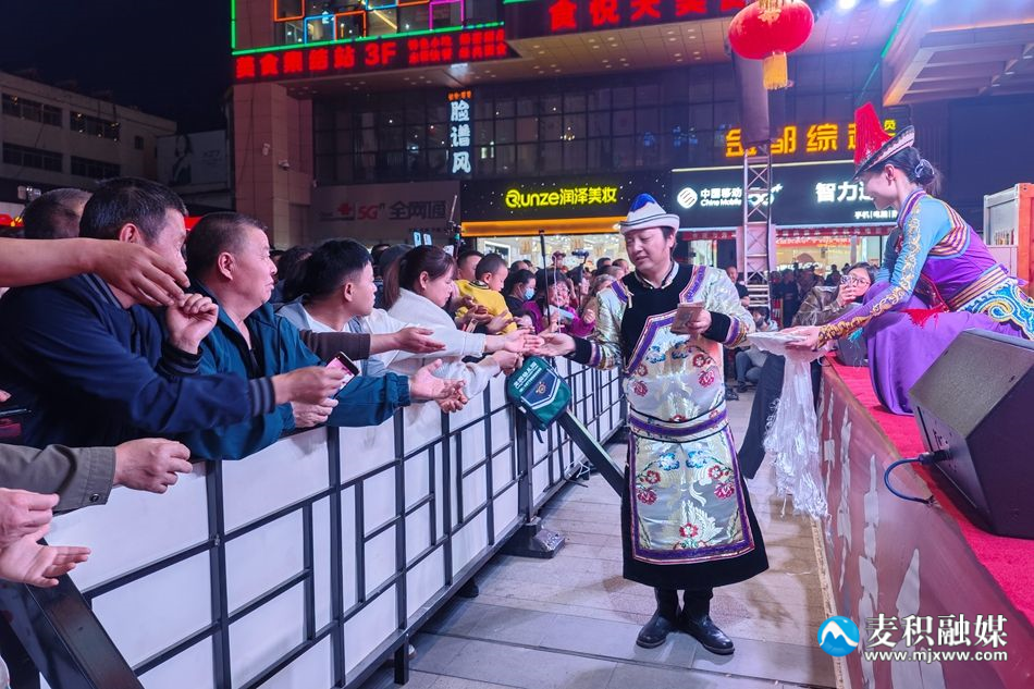 麥積區(qū)融媒體中心訊(記者 魏碧雲(yún) 褚艷玉) 4月11日晚,麥積區(qū)商埠路步行街熱鬧非凡,一場(chǎng)由張掖市肅南縣民族歌舞團(tuán)帶來(lái)的助力“天水麻辣燙”專場(chǎng)文藝演出在這里精彩上演,為市民和游客們帶來(lái)了一場(chǎng)視覺(jué)與聽(tīng)覺(jué)的盛宴。